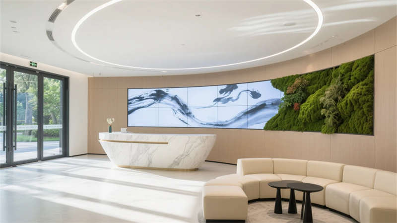 智能接待廳以流動數(shù)字藝術(shù)傳遞先鋒調(diào)性,而健康茶水間則通過有機材質(zhì)與綠植裝置,構(gòu)建松弛有度的能量補給站。整體空間拒絕刻板分割,家具模塊可隨需求自由重組,金屬線條與低飽和色彩在自然光照下沉淀出理性而溫潤的質(zhì)感。
