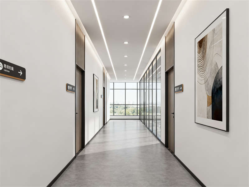 會議室設計兼顧功能性與氛圍感,簡潔的陳設搭配適宜的燈光,滿足不同規模會議的需求,助力團隊高效溝通;休閑茶水間以溫馨舒適為基調,柔軟的座椅與綠植點綴其間,為員工提供放松休憩的角落,緩解工作壓力;走廊通道線條流暢,通過墻面裝飾與燈光設計增強空間層次感,引導人流順暢通行;衛生間注重整潔與便捷,細節處的設計彰顯對使用者的關懷。?