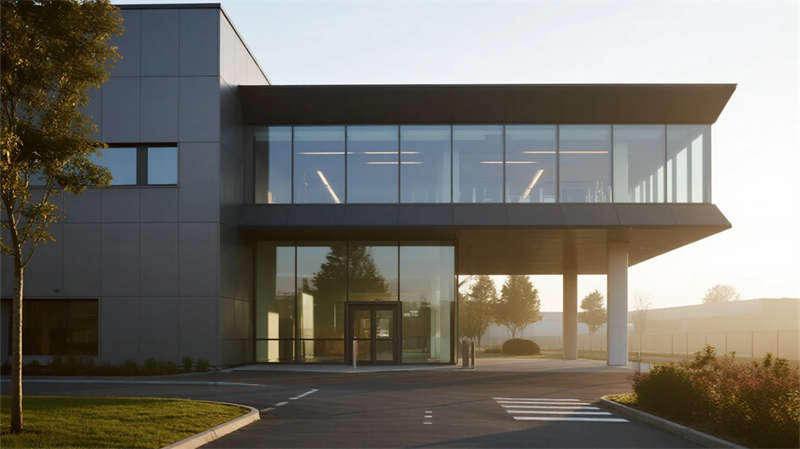本設計以現(xiàn)代簡約語言重構廠房美學。設計摒棄冗余裝飾,聚焦材料本質——銀灰金屬立面與通透玻璃幕墻形成虛實對比,利落線條切割出幾何體塊,在光影流動中彰顯力量感。廠區(qū)布局強調功能與自然的共生:屋頂光伏板陣列呼應綠色生產理念,嵌入式空中花園與竹林連廊為鋼鐵空間注入呼吸感,員工休憩區(qū)模糊了工業(yè)與生活的邊界。