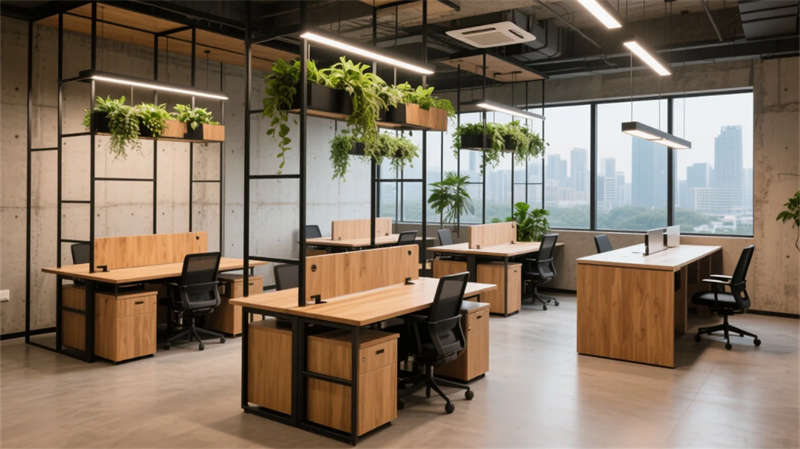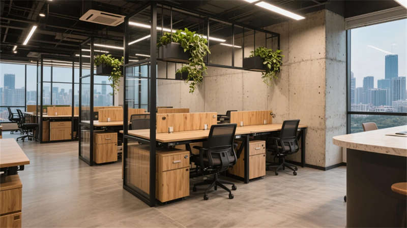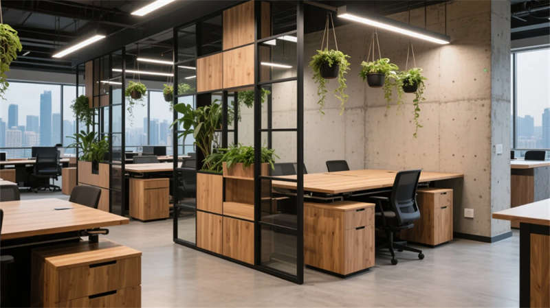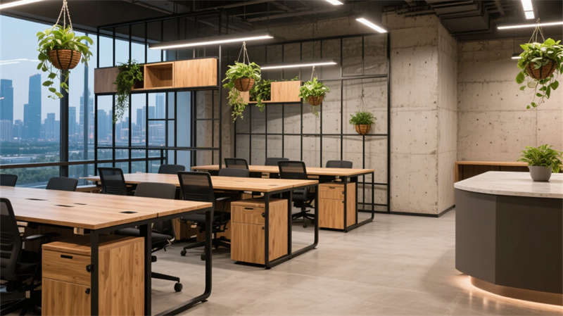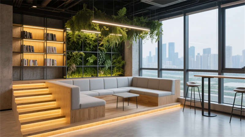 本項(xiàng)目以“自然滲透”與“靈活共生”為核心,將輕工業(yè)風(fēng)的理性框架與生態(tài)綠意巧妙融合。空間打破傳統(tǒng)辦公割裂感,通過(guò)綠植墻體、透光天井與流動(dòng)線條,在合肥城市肌理中營(yíng)造出呼吸感十足的職場(chǎng)綠洲。
