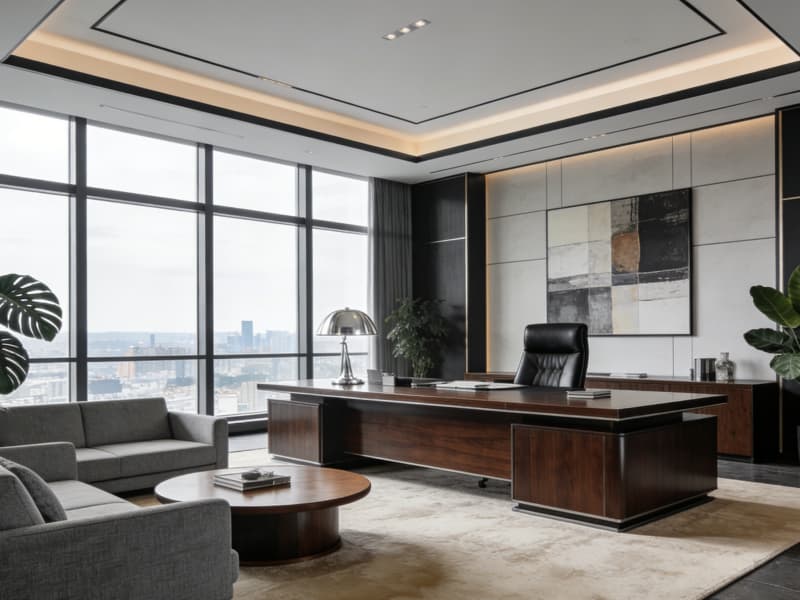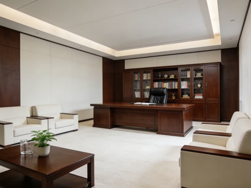 領導及總裁辦公室則兼顧私密性與格調,總裁辦公室以沉穩色系為主,配備智能辦公系統與獨立茶歇區,彰顯企業實力;領導辦公室側重簡約實用,細節處融入定制化收納設計。會議室按不同規模定制,從中小型研討室到大型多功能廳,均配備高清會議系統與聲學優化設計,滿足各類商務場景需求,全方位適配合肥企業高質量發展的辦公需求。