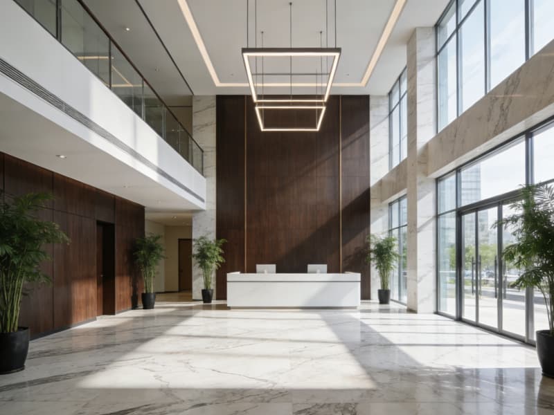立足合肥科創沃土與人文底蘊,本次8000㎡辦公樓設計以“生態賦能、智能高效、格調彰顯”為核心,打造兼具地域辨識度與現代辦公需求的標桿空間。建筑外觀采用極簡現代風格,大面積Low-E玻璃搭配淺灰色金屬線條,既呼應合肥濱湖新區的都市質感,又實現采光與節能的平衡,夜間燈光點亮時宛如廬州天際線上的璀璨節點。