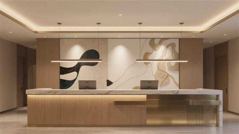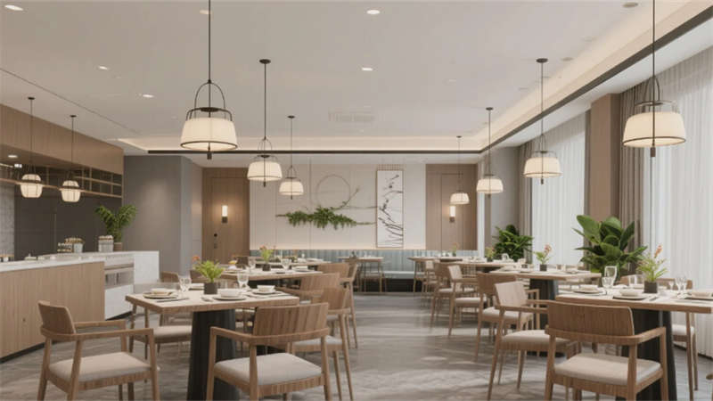 這個酒店設計以現(xiàn)代簡約風格為核心,通過統(tǒng)一的色調(diào)和元素,創(chuàng)造出和諧而優(yōu)雅的空間體驗。大堂作為入口,以淺木色和白色為主調(diào),配以舒適的沙發(fā)和綠植,營造出welcoming的氛圍。前臺延續(xù)簡約理念,木質(zhì)柜臺和藝術(shù)細節(jié)彰顯精致感。餐廳采用開放式布局,木質(zhì)桌椅和吊燈的點綴,讓用餐時刻充滿輕松與自然氣息。酒吧區(qū)則以深色吧臺和暖光照明,提供私密而時尚的社交空間。客房設計注重舒適與隱私,大窗戶引入城市景觀,簡約家具確保寧靜的休憩環(huán)境。會議室專業(yè)而高效,中性色調(diào)和隱藏照明支持專注的商務活動。健身房融入鏡面和綠植,活力十足又不失簡約美感。水療區(qū)則強調(diào)寧靜,柔和燈光和自然元素促進身心放松。整個項目強調(diào)人與環(huán)境的連接,每個功能區(qū)都服務于寧靜與精致的整體體驗,為賓客打造難忘之旅。