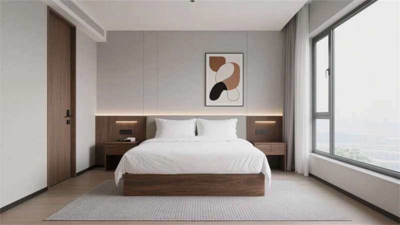 藝術品陳列成為空間的精神錨點。大堂抽象金屬裝置隱喻合肥科技創新基因,客房手作陶器呼應本地文化脈絡,電梯廳的石材拼畫以當代語言解構傳統山水意境。這些藝術介入并非孤立裝飾,而是與建筑結構、功能流線深度交融。
