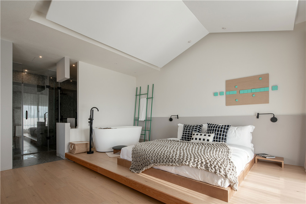 每個人都有一顆追求新奇事物的心,偶爾想要逃離城市的喧囂,跳出日常周而復始的漩渦。在這里,有一種極簡的現代感,它遵循千百年來江南的白墻黑瓦,卻又棱角分明。線條干凈利落,光影在河面瀲滟,日子在這里漸漸停擺。