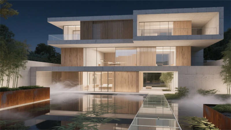 穿過懸浮玻璃步道,下沉庭院以枯山水礫石為紙,霧森系統(tǒng)織就流動(dòng)的薄紗,銹鋼板花壇中蕨類舒展,嵌入式篝火躍動(dòng)的暖光與冷調(diào)混凝土碰撞,喚醒人對(duì)原始自然的感知。挑高的大堂內(nèi),混凝土旋轉(zhuǎn)樓梯切割空間,透光云石墻面在晨昏光線中暈染出水墨質(zhì)感,線性光帶如星軌劃過,將窗外竹影引入室內(nèi)敘事。