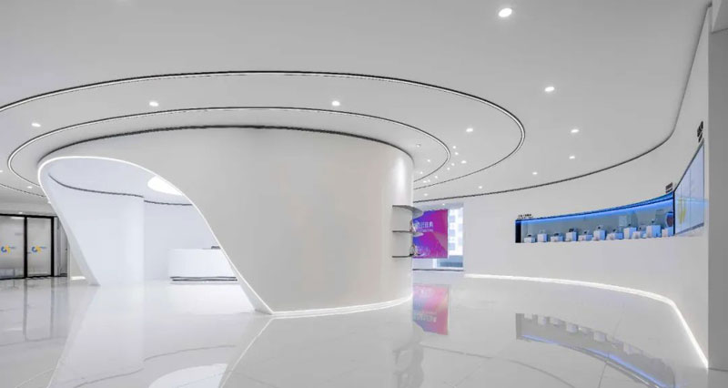 從踏入門廳開始,就劃定了宇宙視界,大廳以天花曲線燈帶統(tǒng)籌整體空間關(guān)系,異形包裹的空間內(nèi),橢圓形發(fā)光燈膜在營造時(shí)空感的同時(shí)輔助自然光線帶來尤為舒適的光照感為了將空間利用率達(dá)到最大。