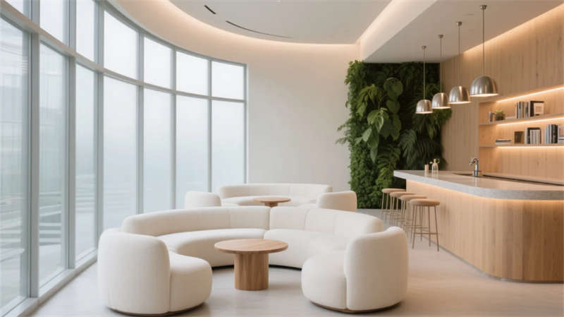 在宿州這座蓬勃發展的城市,我們以“自然與人文共生”為核心理念,打造了一座現代辦公空間。設計融合了簡約美學與生態元素,淺木色調與綠植貫穿始終,營造出清新舒緩的環境。開放式區域采用通透玻璃隔斷,最大化引入自然光線,搭配弧形線條家具,弱化辦公的冷硬感;獨立空間則注重私密與靜謐,綠植墻與啞光材質平衡了高效與放松的需求。