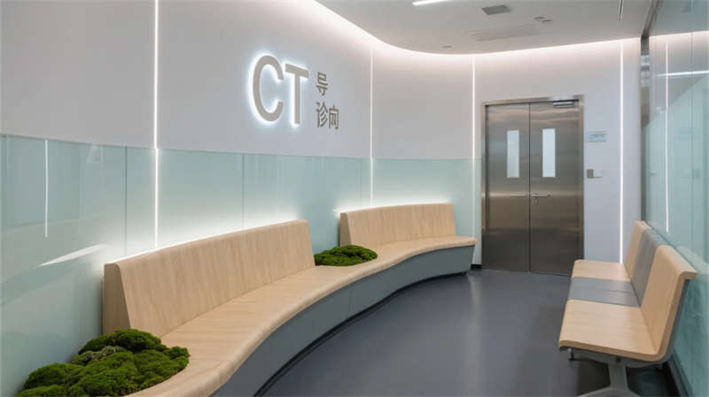 門診大廳借全景落地窗模糊室內外界限,庭院綠意成為天然療愈元素;病房區采用柔光系統與木質肌理,弱化傳統醫療空間的冰冷感。影像科與手術室通道以科技藍光點睛,在嚴謹中注入未來感。康復大廳與屋頂花園形成垂直療愈體系,自然光影透過格柵灑落,促進身心同步康復。